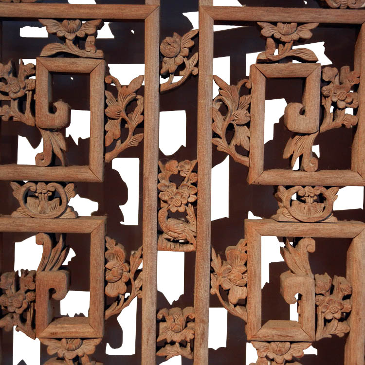 This pair of very beautiful 17-18th century lattice doors are carved with fine and exquisite motifs in auspicious symbols. In original unfinished good condition.