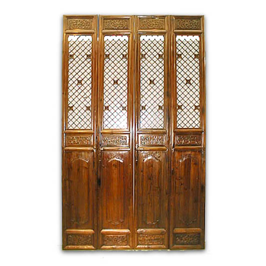 With rare blossom design. Since Jan 2004, architectural doors and windows are difficult to obtain due to China's effort in salvaging the finest antiquities available domestically, and also because of the abundant newly rising museums seeking for the stock. They are great investments of life-time aesthetics for your home. Age: 250 years old. Finish: French Polish