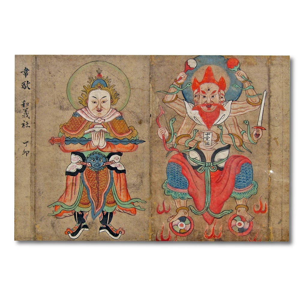 #DAO-138 A Manuscript Size Antique Chinese Folk Painting of Two Immortals.