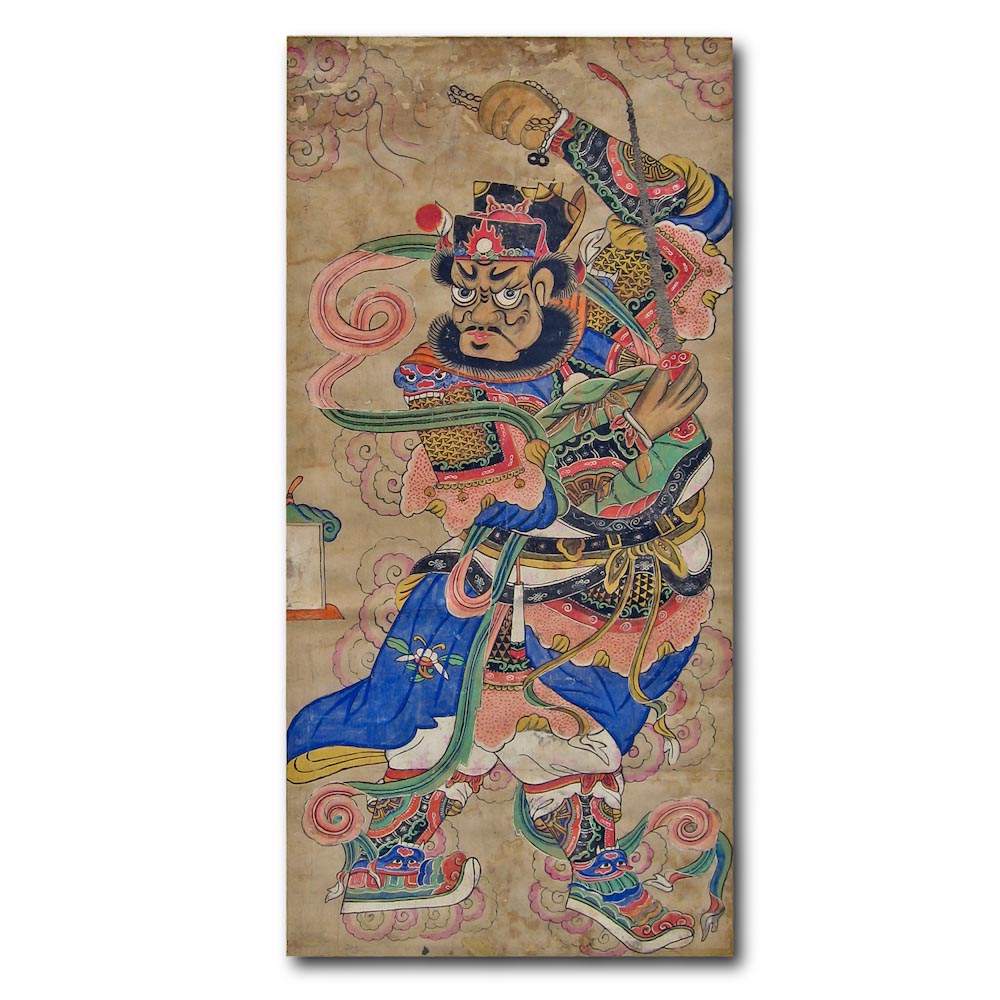 Large size antique hand-painted Chinese painting of a Daoist immortal with beautiful full costumes in moving motion.