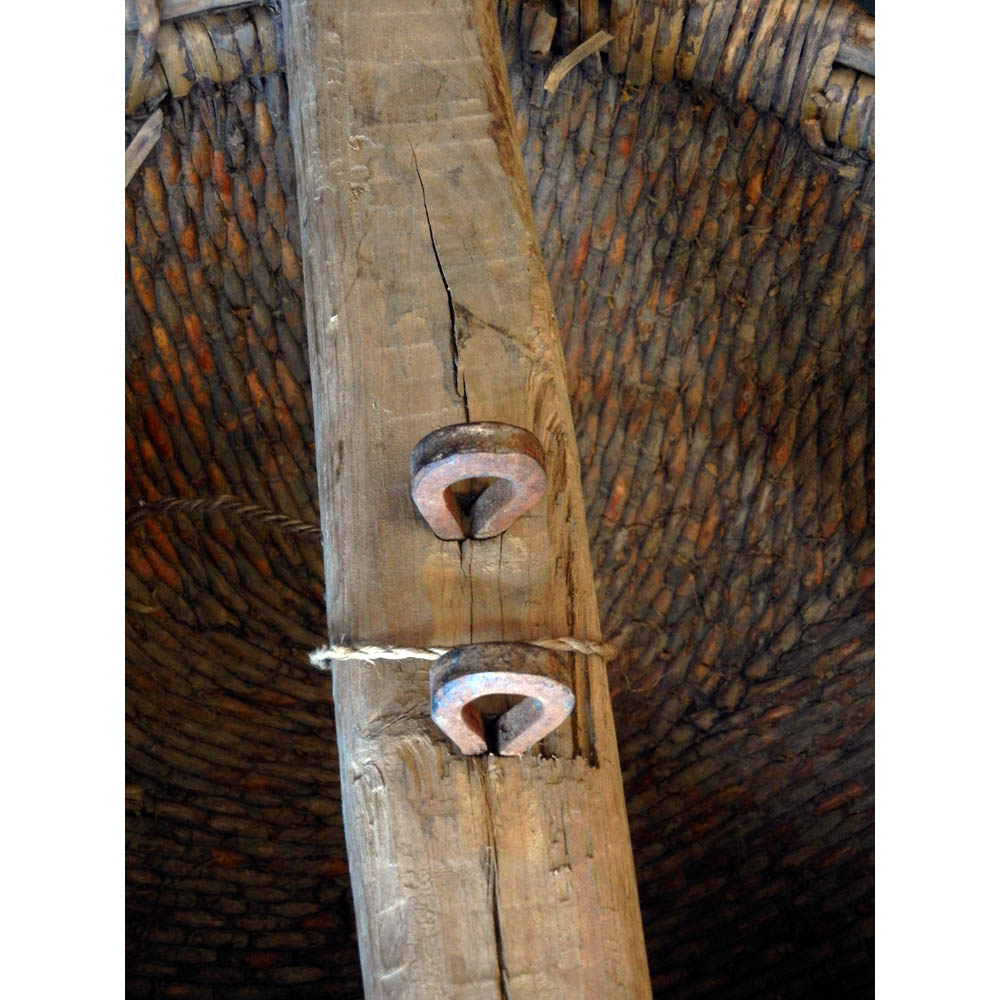 An extra large size willow-woven grain measure with iron fitting. Early to mid 20th century.
