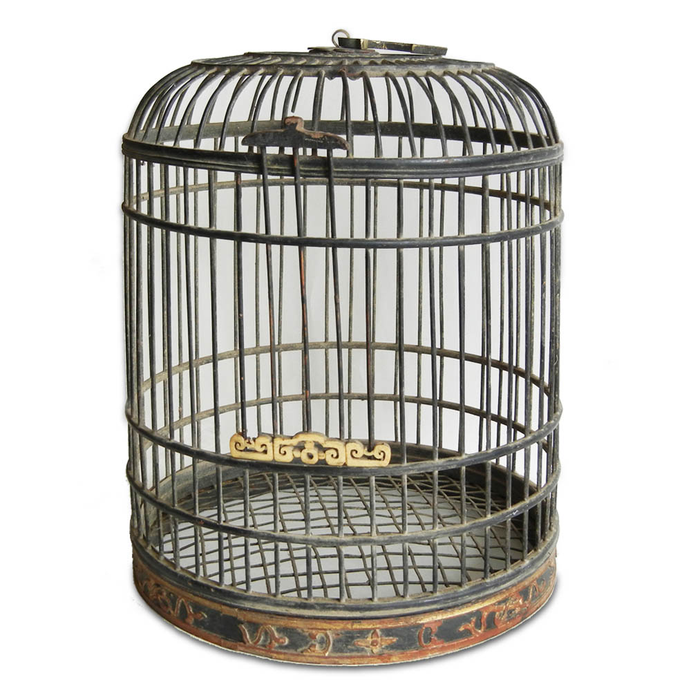Small size antique birdcage with bone carving; with gilt and carved auspicious symbols at the bottom.