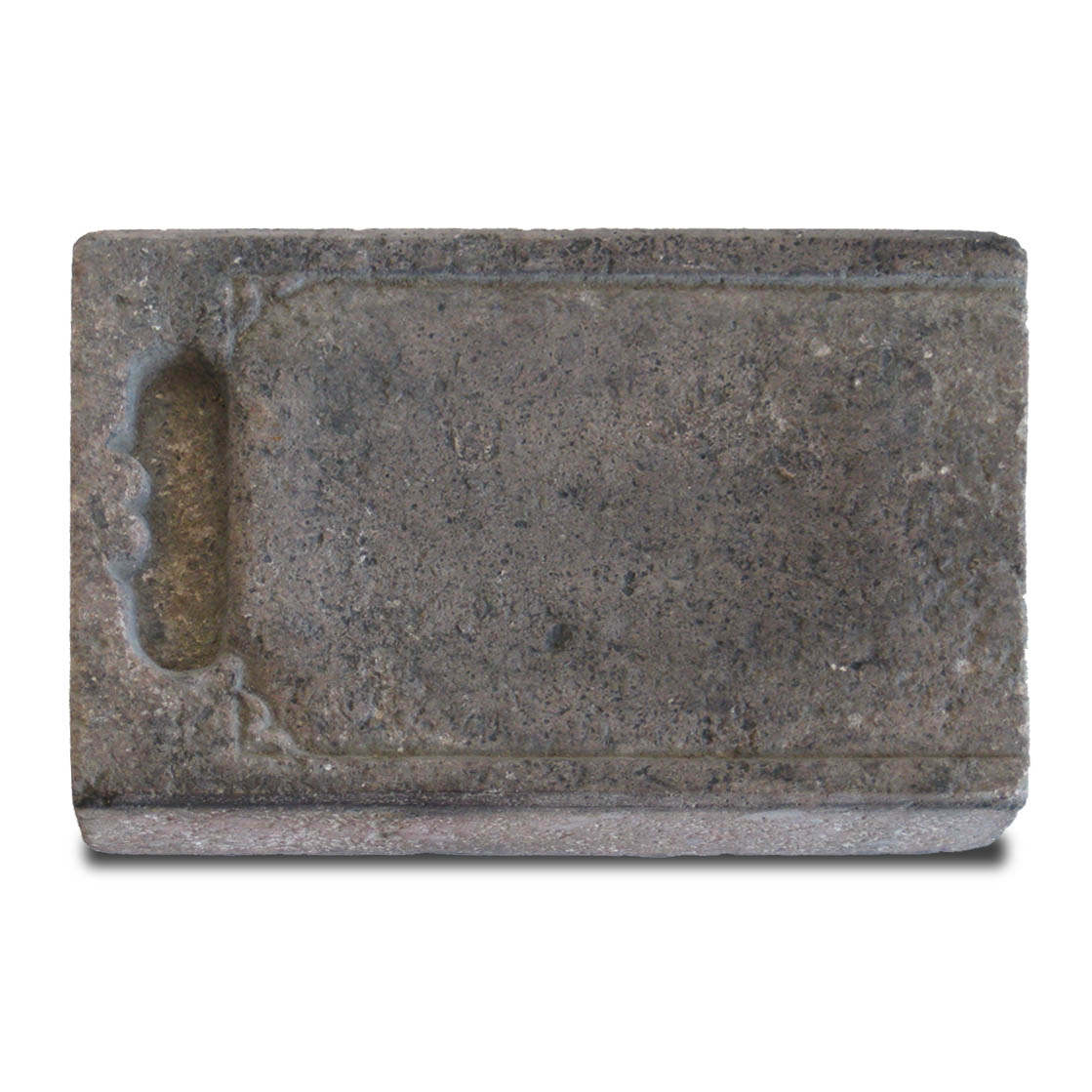 An ancient pink stone piece in the form of an ink stone with elegant simple lines.