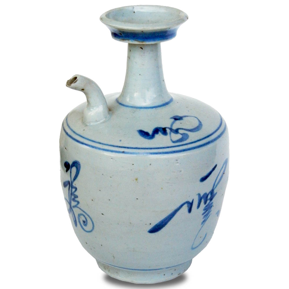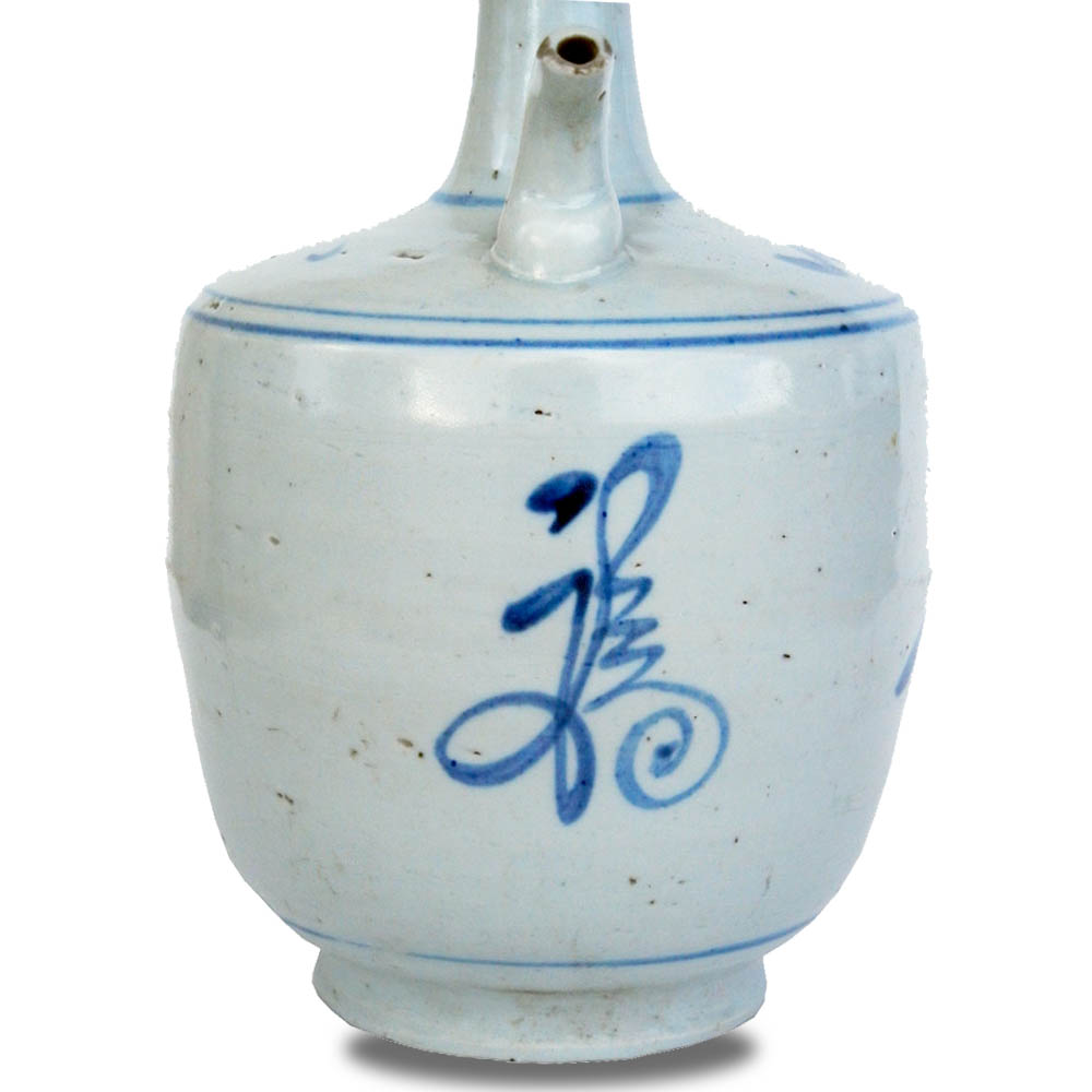 Antique 17th-18th century Ming style blue and white porcelain wine ewer; as is.