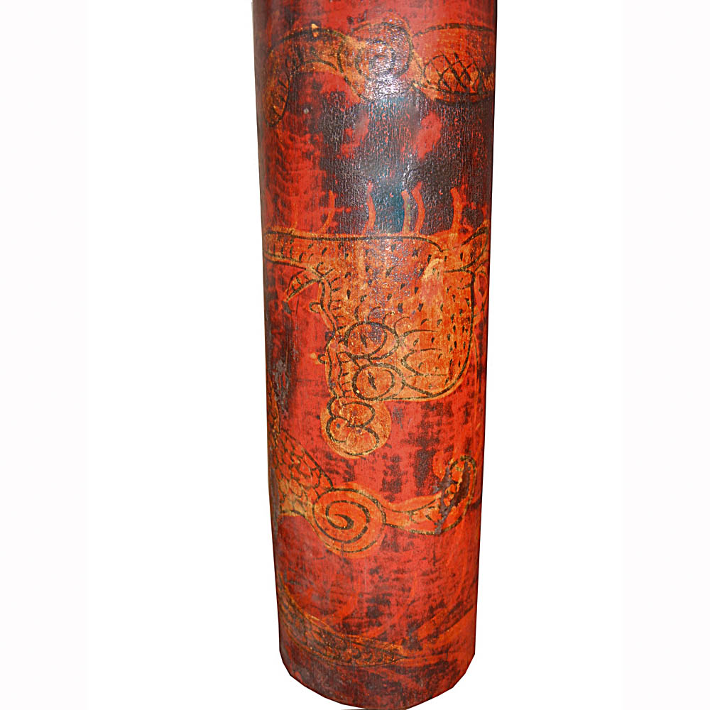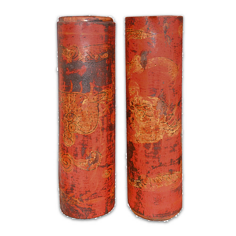#14346 Pair of Antique Lacquered Candle Holders with Painted Dragons