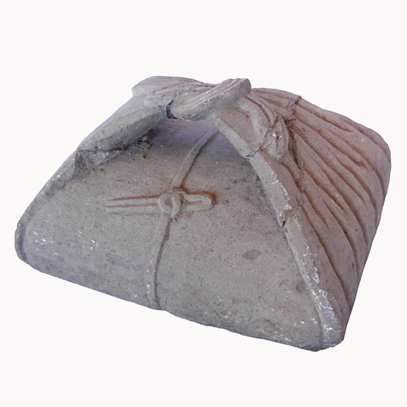 Rare old stone weight carved in a gift bag shape; as-is (has a big crack).