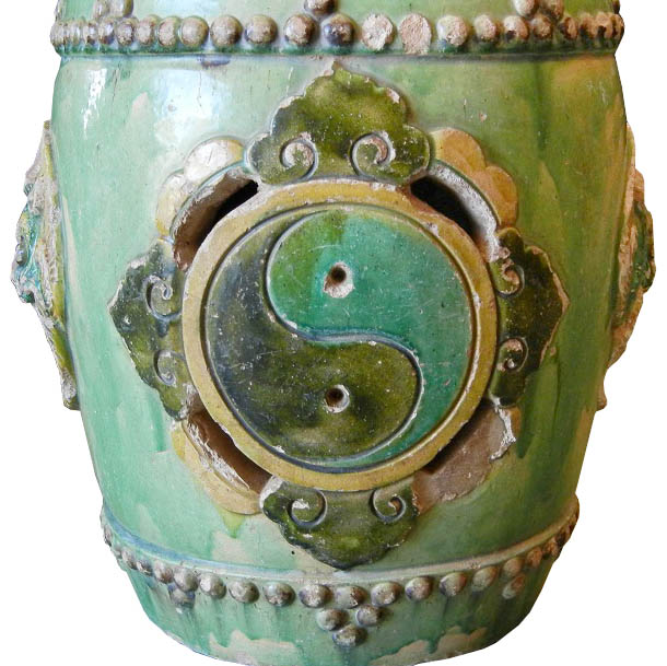 #12504 Rare 17-18th Century Tri-Color Glazed Ceramic Stool with Yin-Yang Design