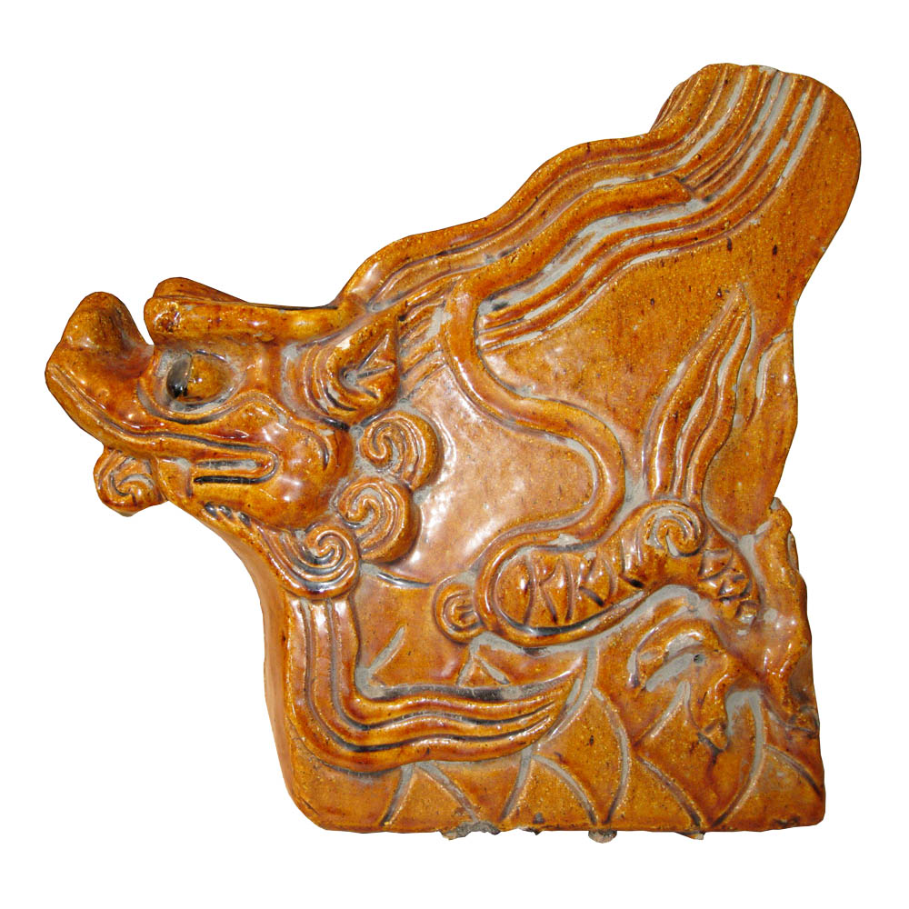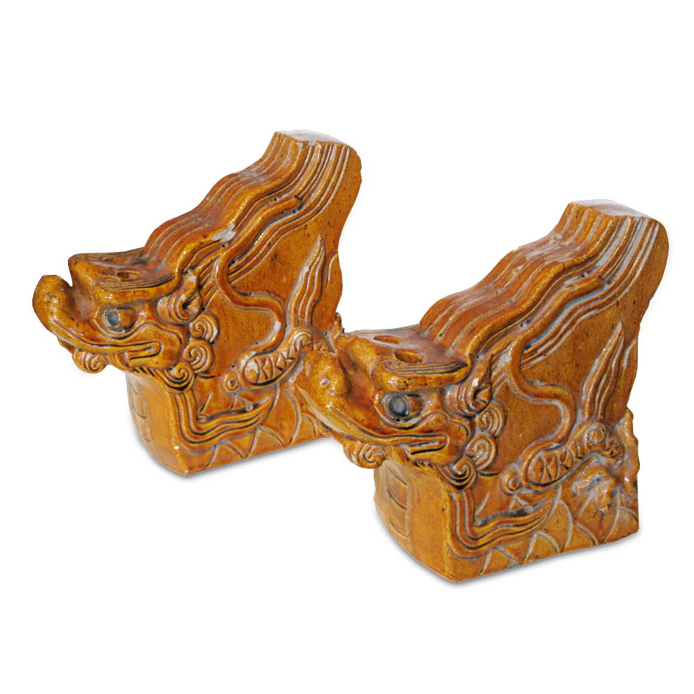 #10330 Pair of Old Roof Tile Dragon Heads in Chestnut Glaze