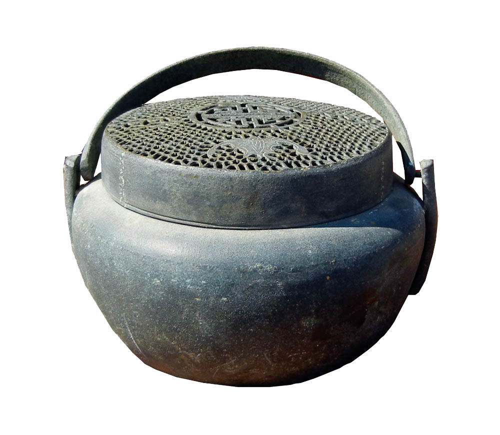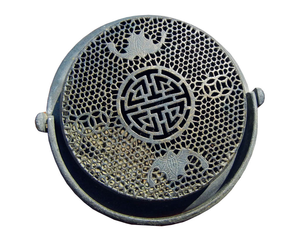Excellent small size antique brass hand warmer with finely carved Fu(bat, blessing), Lu (coin, wealth), and Shou (longevity)auspicious symbols.