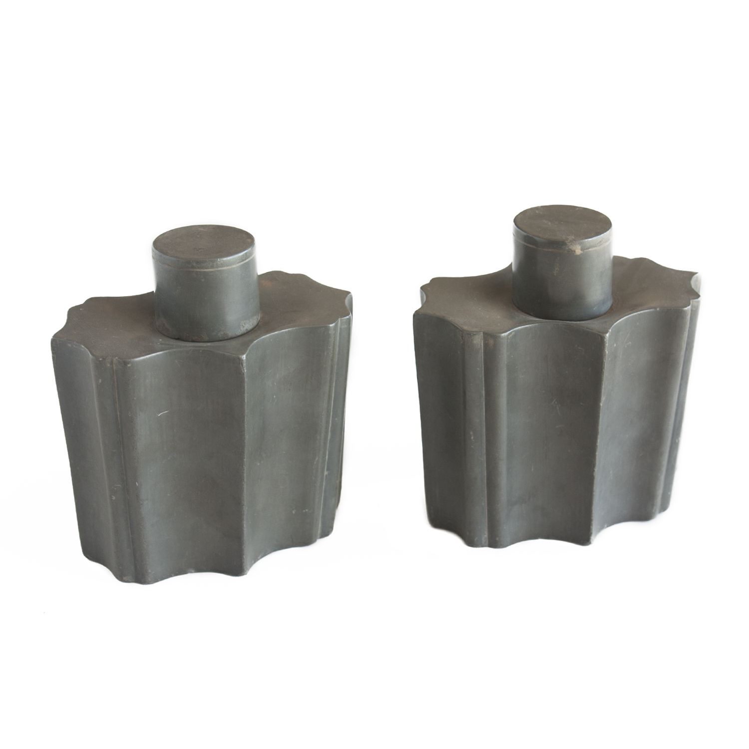 #14074 Good Pair of Antique Pewter Tea Storage Jars with Lids